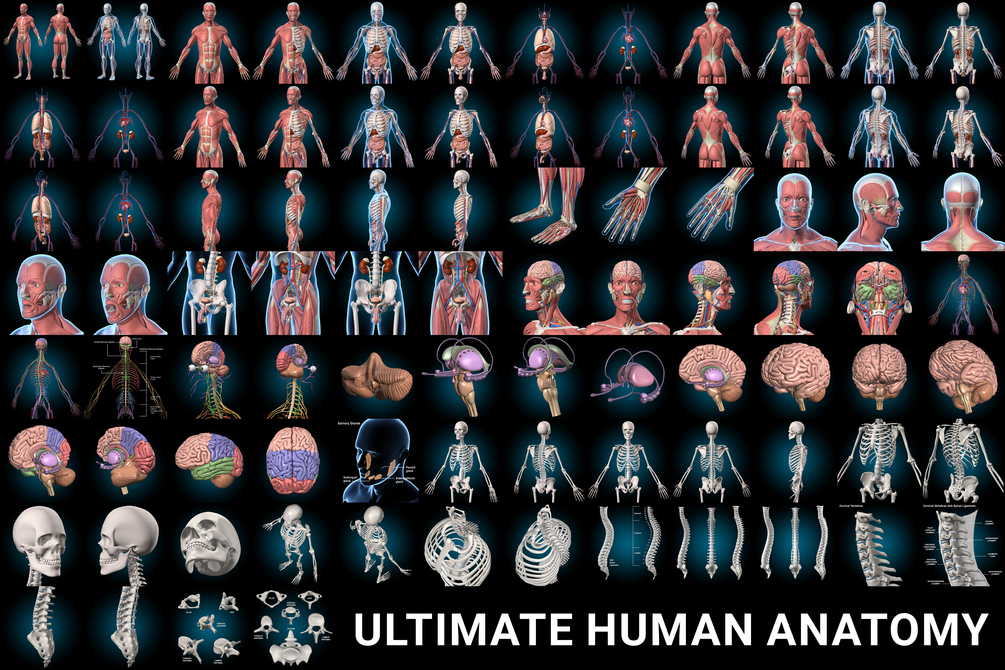 11. Detailed & textured muscular system that attaches seamlessly to the skeletal model. The muscles are true 3d objects that can be select and hidden to reveal the internal anatomy inside.